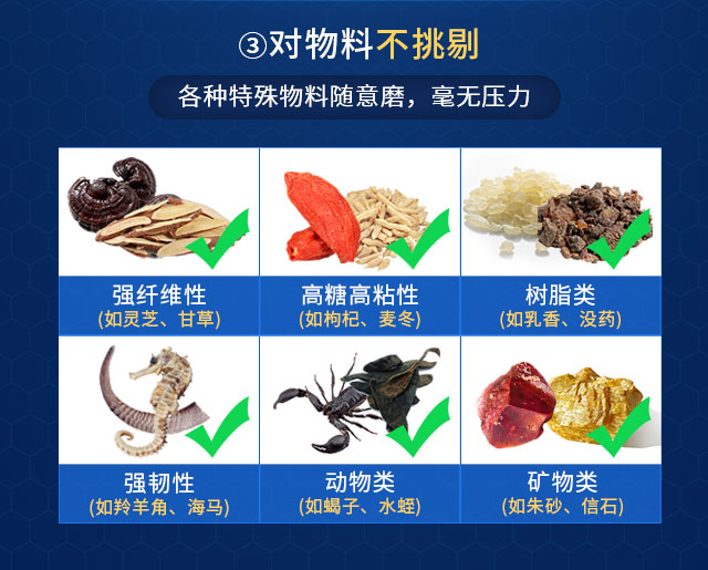 普莱申中药研磨粉碎机几乎可以粉碎所有物料,它除了可以粉碎常见的中药外,还可以轻松粉碎以下中药: