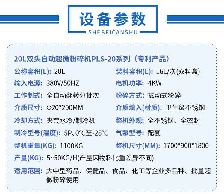 普莱申超微粉碎机,特有的核心技术,让自动化程度更高,使用更便捷,特色超低音在超微粉碎技术领域中一直处于领先水平;专业生产与制造的振动式药物超微粉碎机、低温粉碎机、细胞破壁机,在同行业中属于经得住推敲的优势产品。